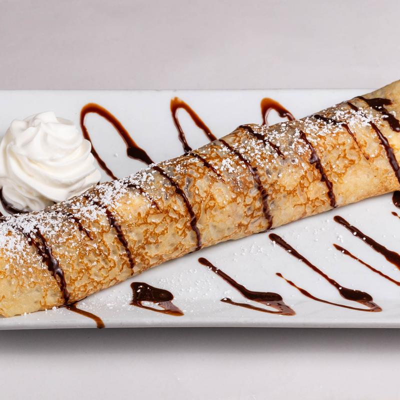 Choice of 5 Fillings: Nutella, Fudge, Caramel, Vanilla Custard, Apples, Bananas, Blueberries, Strawberries, Oreos, Reese's, Walnuts, or Peanut Butter with Chantilly Cream.