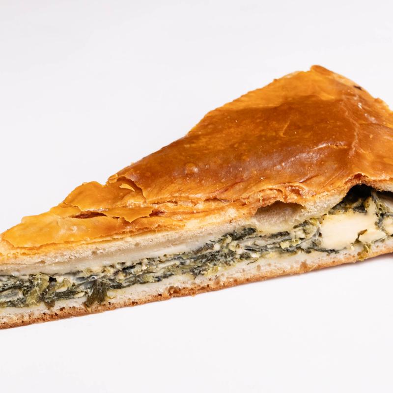 Semi-sweet semolina custard baked in puff pastry phyllo and sprinkled with powdered sugar and cinnamon. served warm.